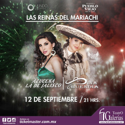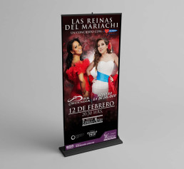 Desarrollo de concepto e imagen para publicidad de la gira de conciertos de Las Reinas, cantautoras e interpretes del tradicional mexicano, Dina Buen Día y Azucena “La de Jalisco” quienes se unieron para ofrecer conciertos con temas base de la música mexicana interpretados con mariachi. El trabajo consistió en crear la imagen solida central que fuera funcional para sus distintas adaptaciones en la comunicación de los eventos, actualizando datos para la gira. Realizamos retoque cosmético y composición visual con posterior diseño gráfico para publicación de la información y adaptación a diferentes formatos para producción de la comunicación impresa y digital.